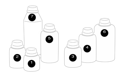 Frascos com bocais de diâmetro 35mm. Tampa/Lacre.